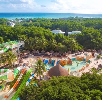 Sandos Caracol Eco Resort opens doors to Mexico's hidden wonders, nestled in the lush Riviera Maya jungle. Unveiling a world of animals, mangroves, cenotes, and captivating phenomena, dive into crystal-clear cenotes and drift along mangrove rivers with fish below and monkeys above for ultimate tranquility. The 29-slide waterpark, amid natural fauna, promises family fun. Each evening, traditional Mayan ceremonies revive the region's cultural heritage through unique performances.