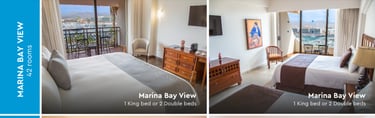 Description: Spacious suites with either 1 king bed or 2 double beds. Option between views of the bay and marina or partial ocean view. Max. Capacity: Sleeps up to 5 people