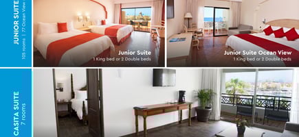 Rooms with two double beds or one king-size bed await you at Sandos Finisterra. These rooms boast stunning views of the marina and downtown Cabo San Lucas.