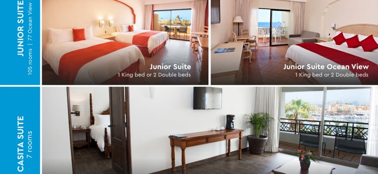20 beautifully styled guestrooms set on a hillside looking out over breathtaking views of Cabo San Lucas, the Sea of Cortes and the bustling marina and 22 beautifully Mexican styled guestrooms set on the bottom of the hill in the secluded and historic original area of the hotel looking out over spectacular views of the Sea of Cortes and the bustling marina. (Some of the rooms set on the bottom of the hill are not recommended for people with limited mobility.